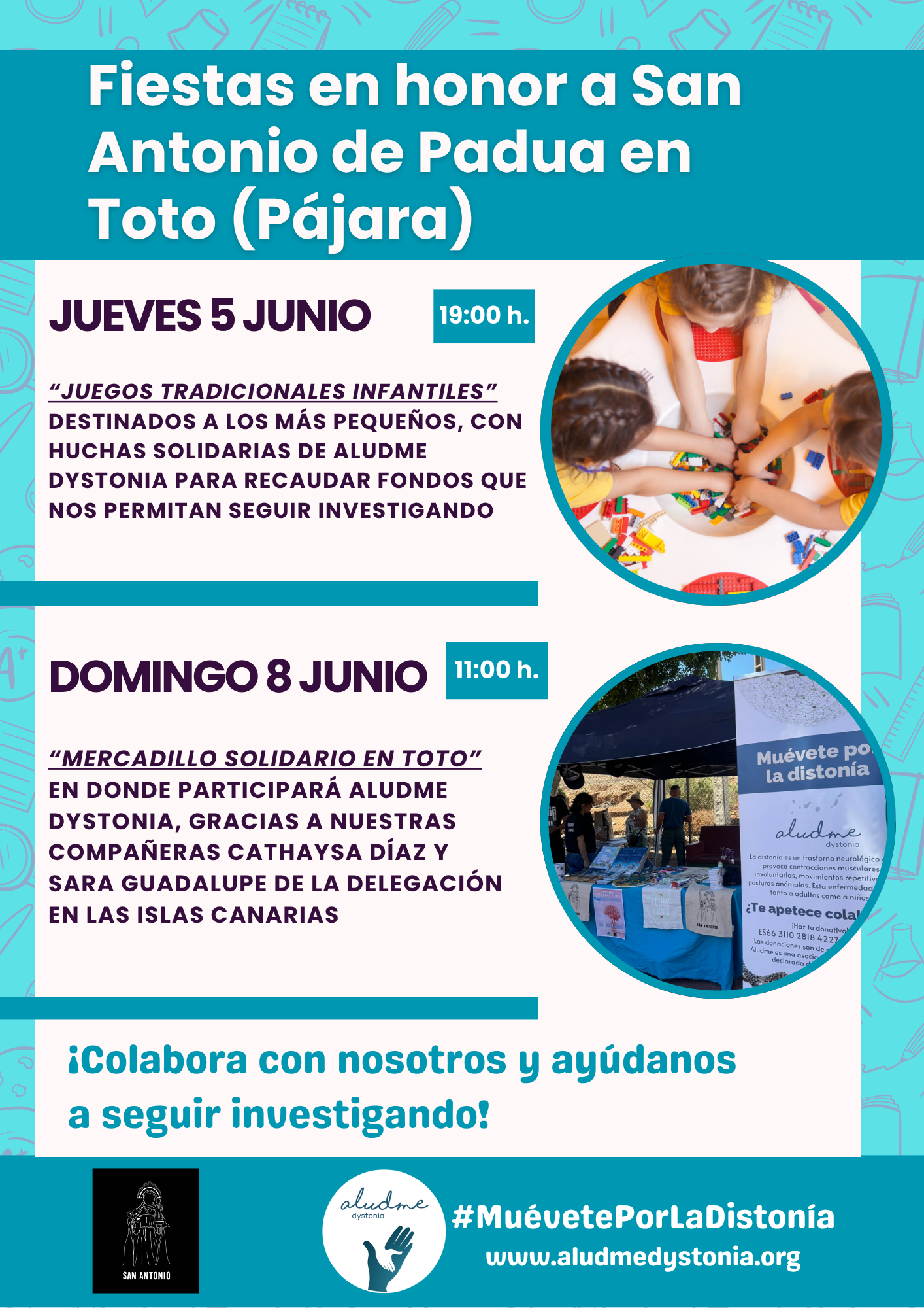 Aludme Dystonia estarรก presente en el mercadillo de Toto (Pรกjara) con motivo de las Fiestas en Honor a San Antonio de Padua